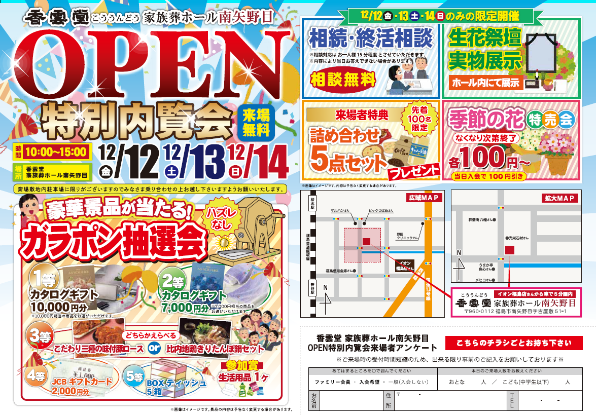・開催場所 福島市南矢野目字古屋敷51-1(香雲堂 家族葬ホール南矢野目)