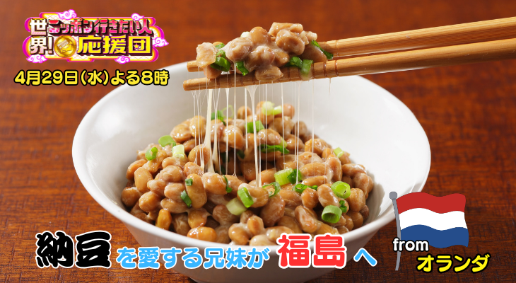 オランダからやってきた納豆を愛する兄マロンさんと妹リュディアさんが福島へ!独学で納豆を販売する二人は「本場で納豆作りを学び、父に食べさせたい」と気合十分。福島では美しい経木納豆の伝統技術や驚きの納豆フルコースに大興奮!帰国後、日本で得た新技術で納豆作りに挑戦!果たして、愛する父の感想はいかに!?