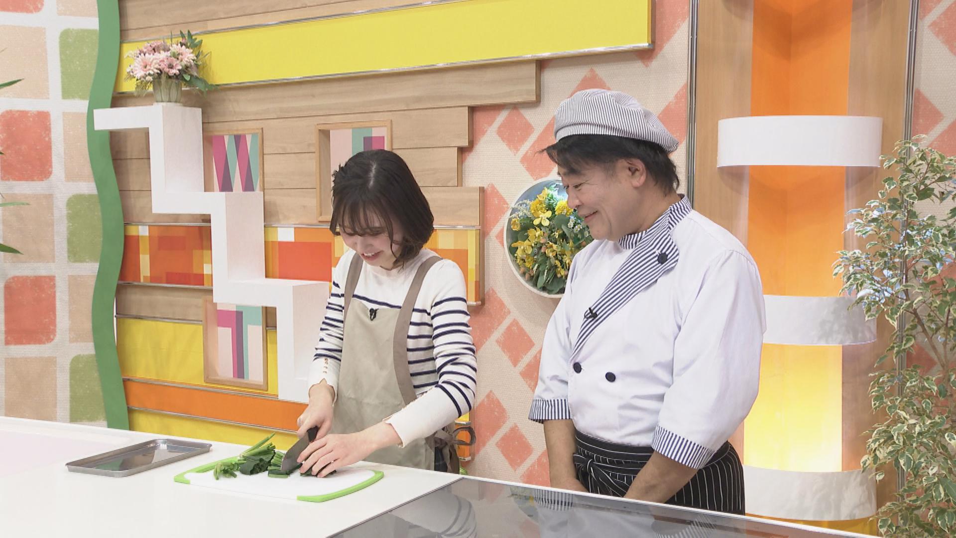 3.フライパンにサラダ油をひき弱火で桜エビを炒める。エビの香りがしてきたらニンニクをいれる。