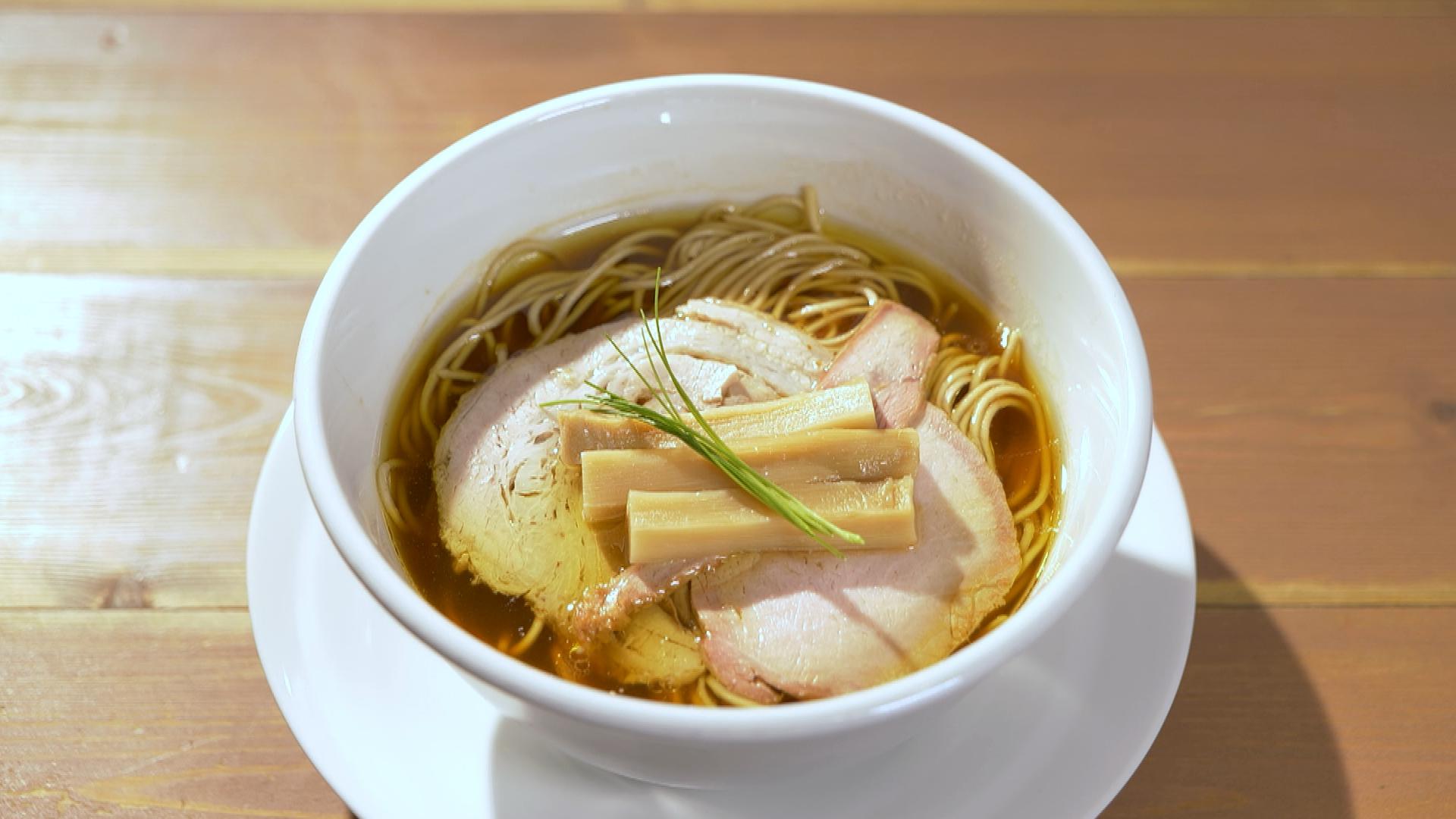 鶏と水だけで作るうまみあるスープ。ブレンドした粉で毎朝手打ちした麺。
