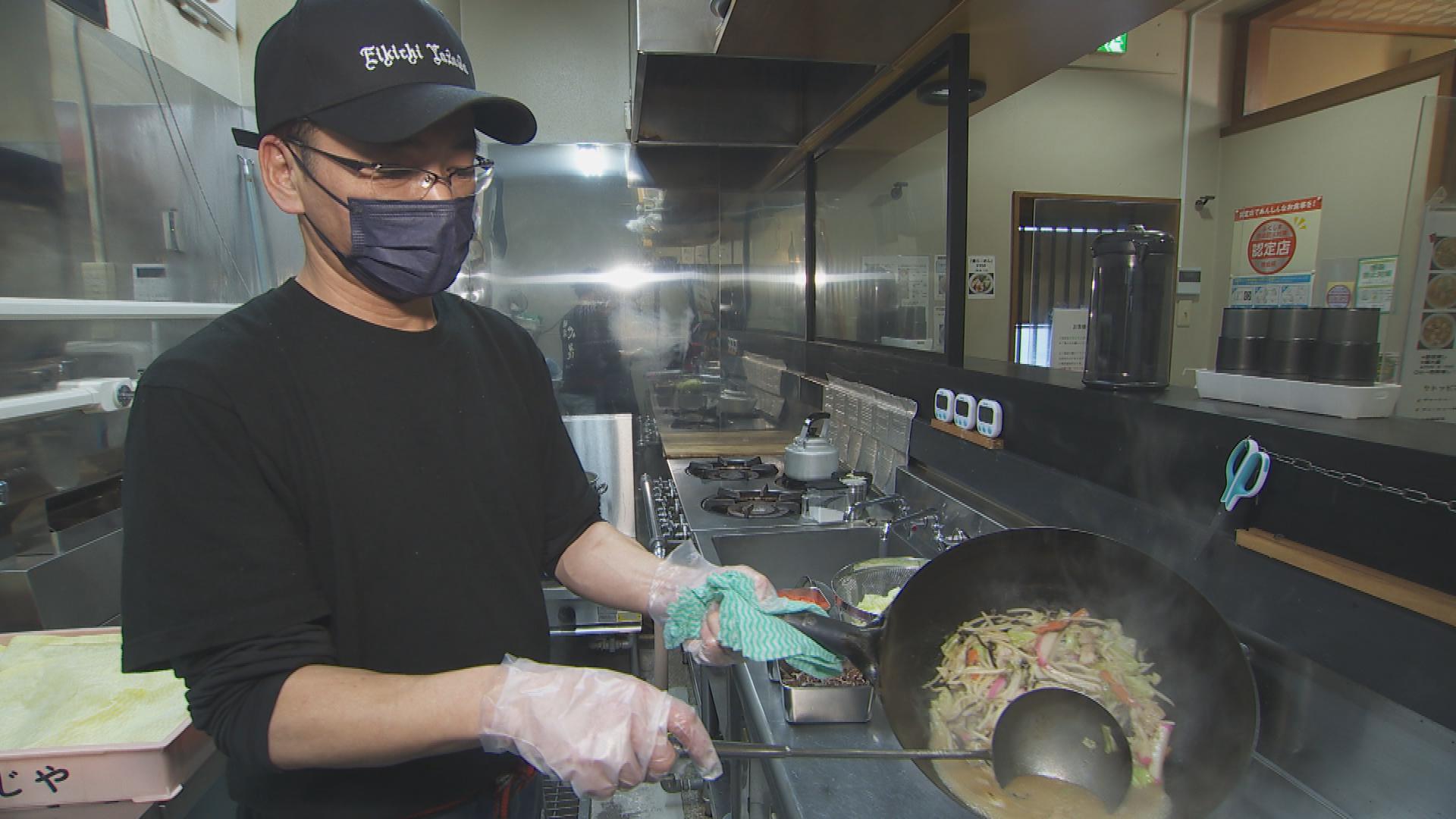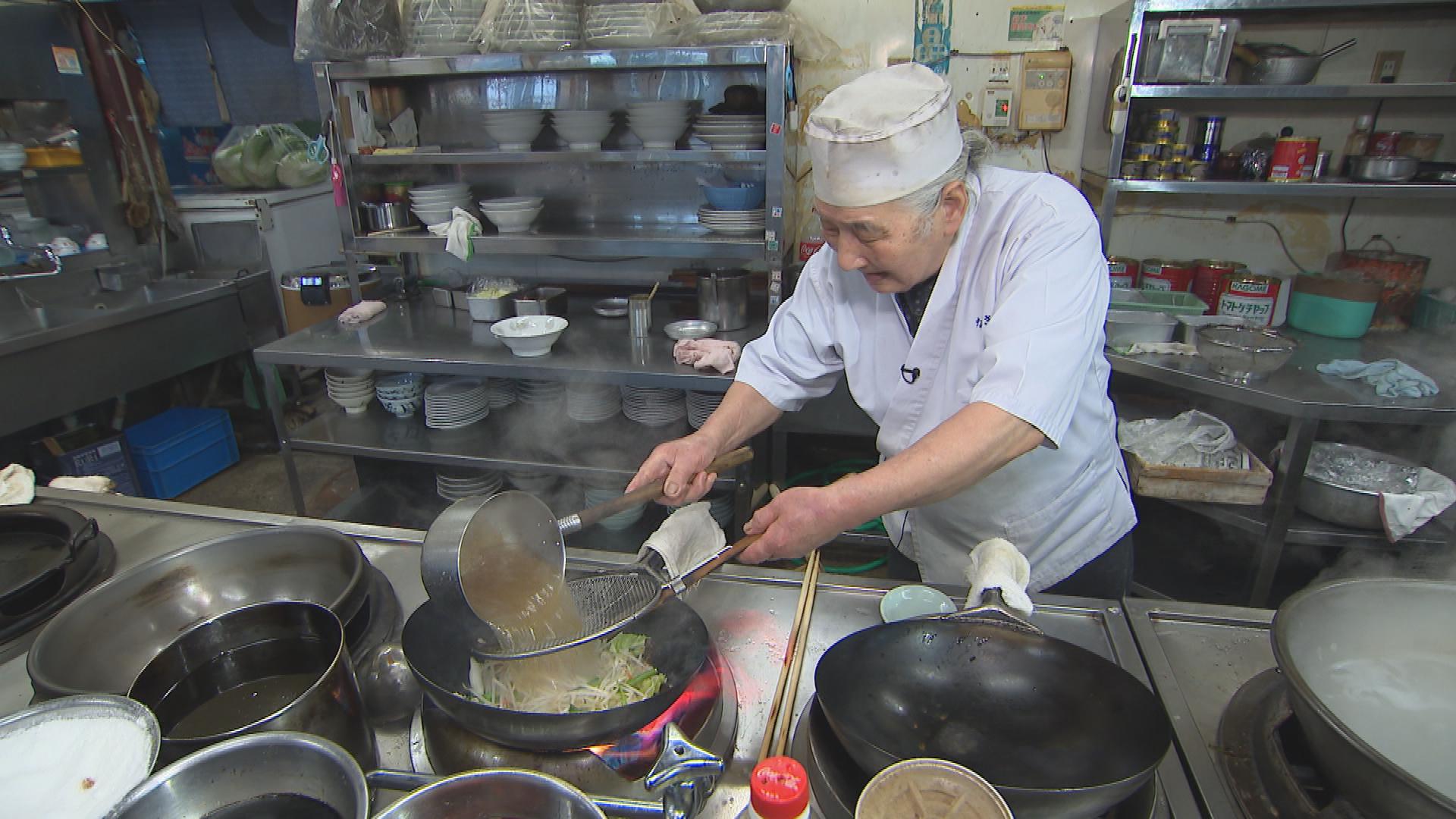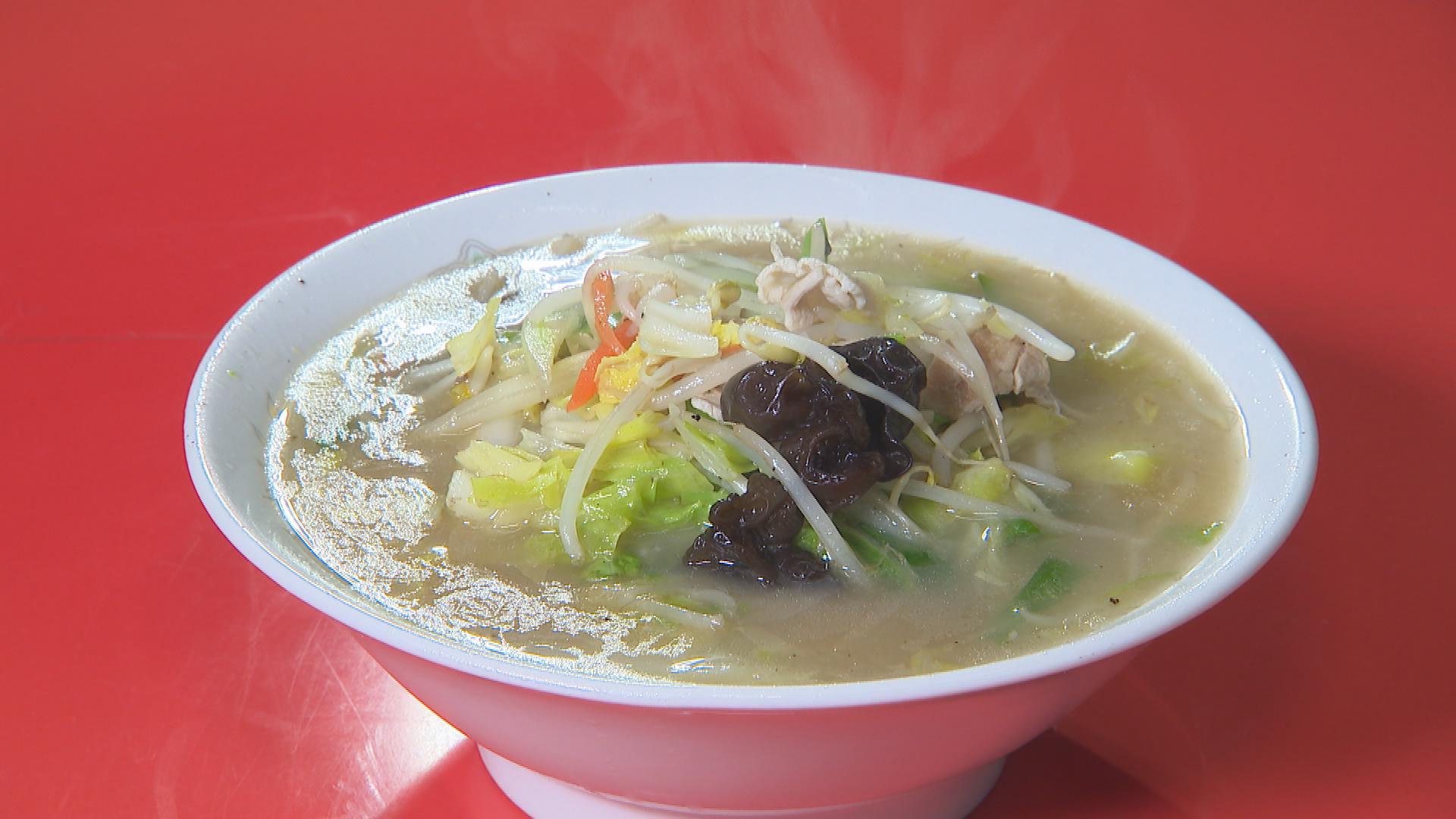 麺はタンメン用に製麺した太い麺を使用。豚骨と鶏ガラでとったスープで野菜を煮込みます。