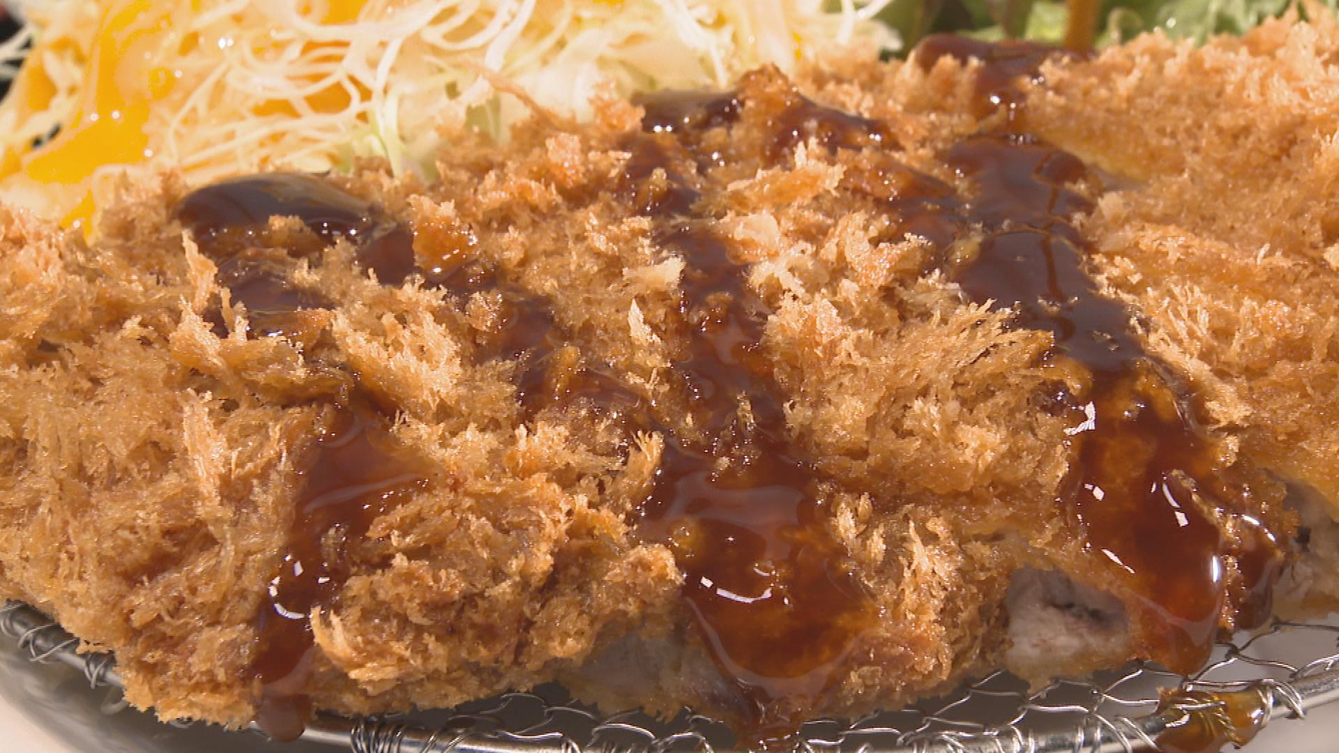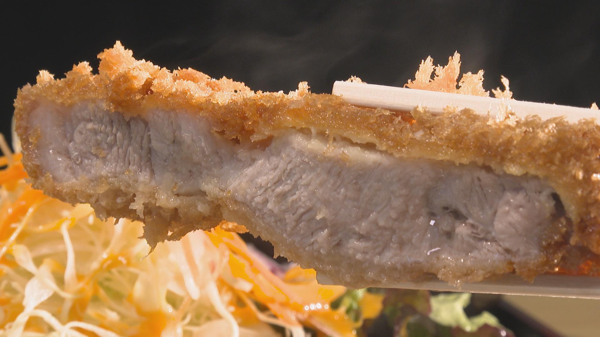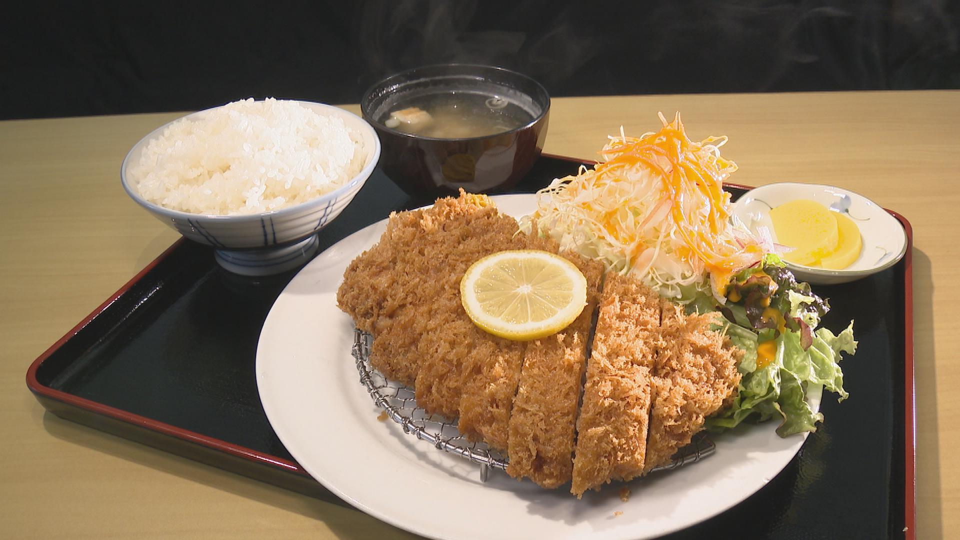 分厚いロース肉を使用。粗めのパン粉を使いサクサクに揚げたボリューム満点で食べ応えのあるとんかつです。