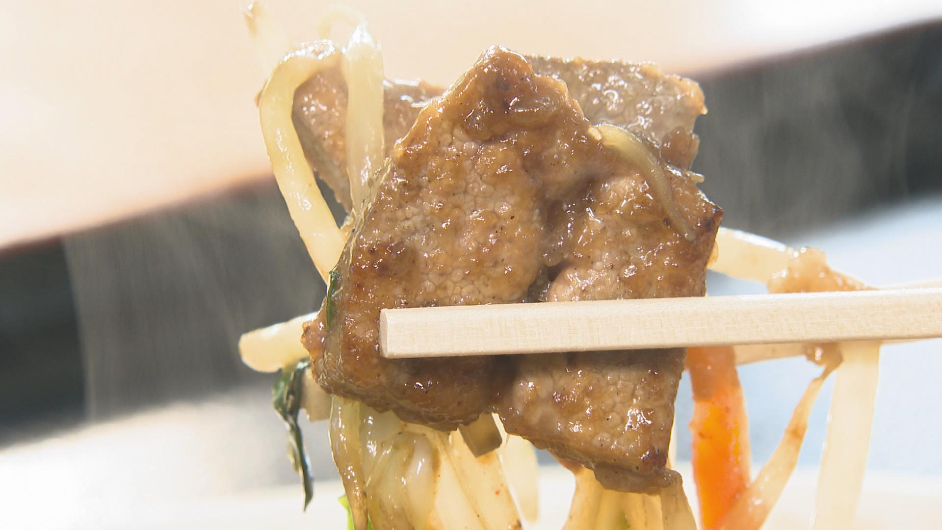 鮮度にこだわった食べやすいレバーを使い、野菜を混ぜてオリジナルのタレとしょうゆダレで炒めます